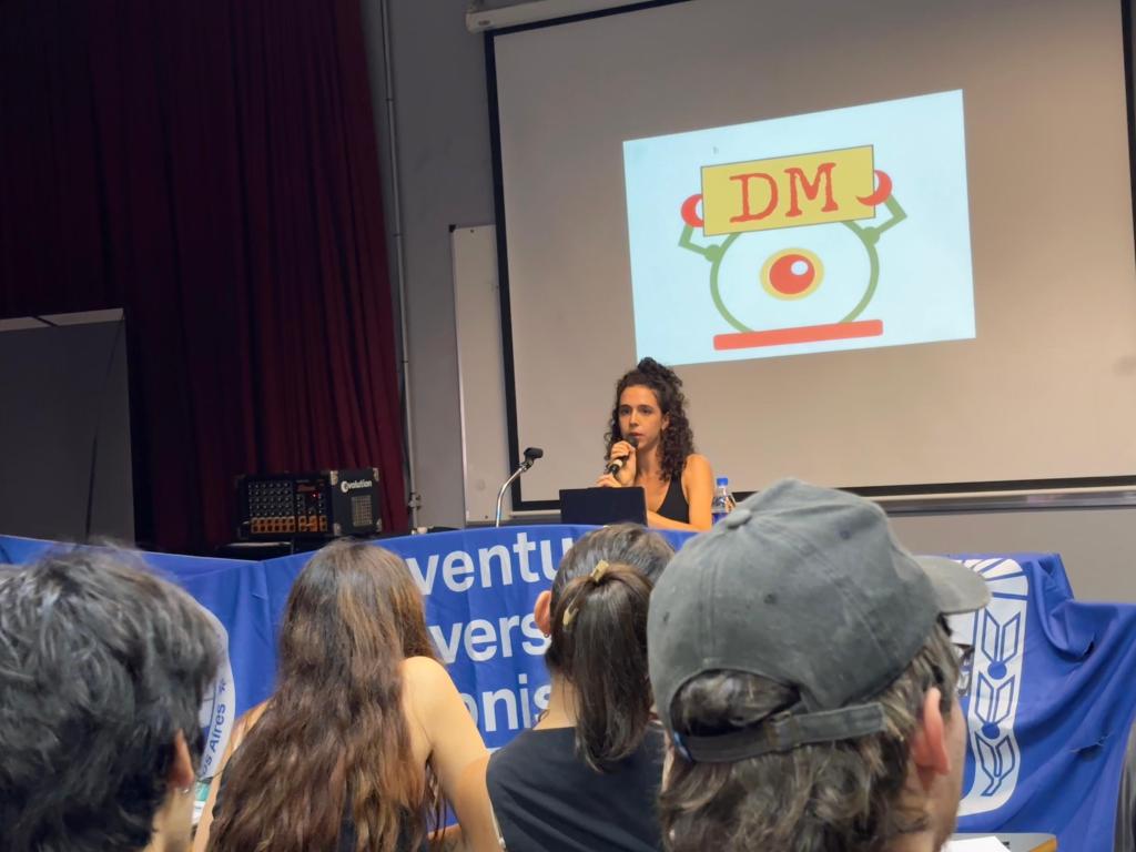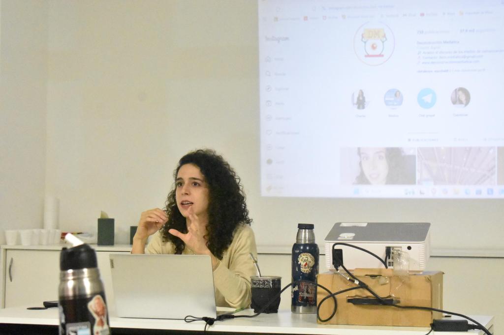 Participo en encuentros convocados en distintos escenarios: universidades, centros de formación técnica, escuelas, centros culturales, bibliotecas y clubes, con el objetivo de habilitar debates sobre los medios y las redes.
